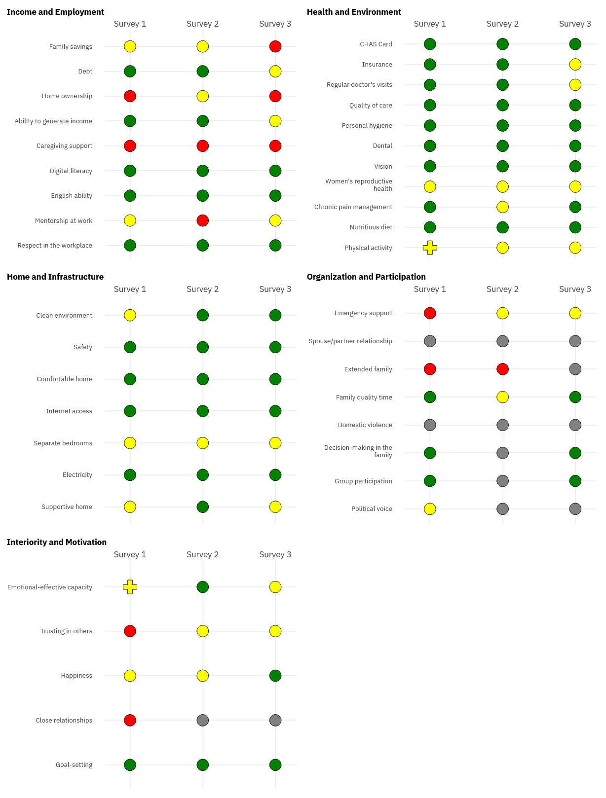 - Face a big issue of time poverty, which ends up with her sacrificing on better opportunities for herself (e.g. skills upgrading, job promotion) as well as her mental wellbeing (highly insufficient rest, and me-time)